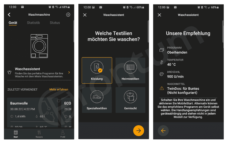 Darüber hinaus unterstützen etwa 70 % der Miele-Waschmaschinen Wi-Fi-Konnektivität (über die App Miele@mobile), im Vergleich zu 23 % bei anderen Marken.